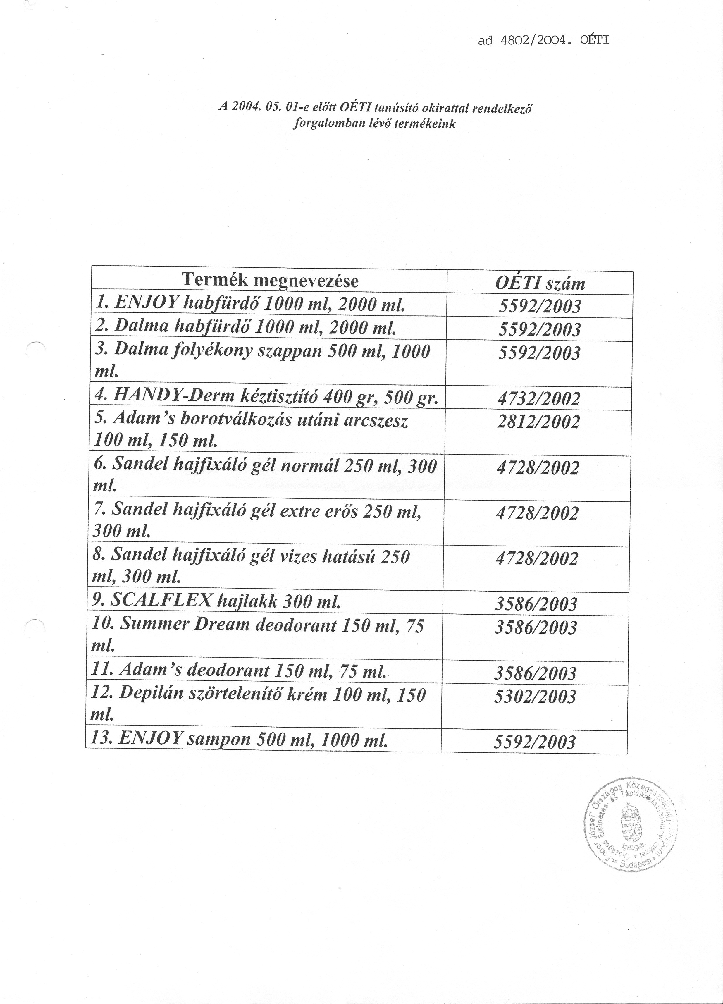 Dalma_folyszappan_hajzselé_OÉTI_nyilvántartás